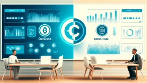 DALL·E 2024-06-05 05.57.43 – A split-screen image comparing two cryptocurrency trading platforms, Coincheck and SBIVC Trade, for beginners. On one side, depict the Coincheck logo X Facebook 2024.06.05 FacebooktwitterHatenaPocketCopy